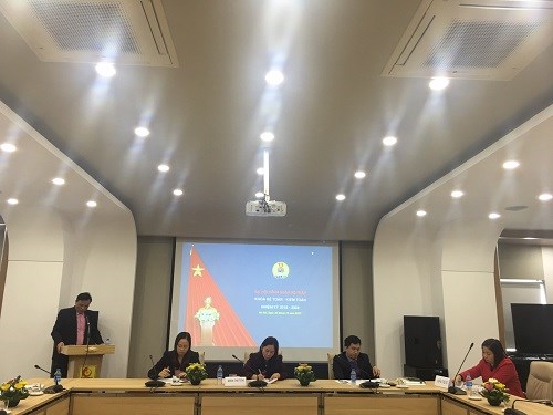 Đồng chí Trần Thị Dung-Chủ tịch công đoàn khoa Kế toán Kiểm toán, thay mặt đoàn chủ tịch đã trình bày báo cáo tổng kết hoạt động công đoàn nhiệm kỳ 2013-2017. Đồng chí Nguyễn Thị Hồng Nga, ủy viên BCH công đoàn khoa Kế toán Kiểm toán, thay mặt đoàn chủ tịch trình bày Báo cáo tổng kế hoạt động công đoàn Trường ĐH CNHN nhiệm kỳ 2013-2017 và phương hướng hoạt động nhiệm kỳ 2018-2022.