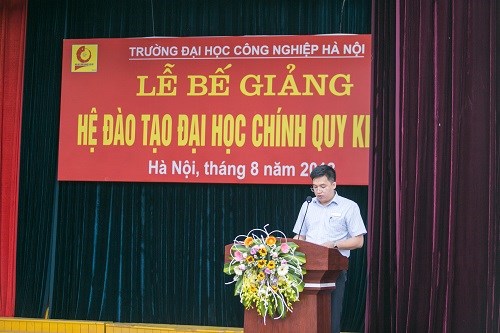Ban Lãnh đạo Nhà trường, TS. Nguyễn Anh Tuấn - Phó Hiệu trưởng phát biểu chúc mừng các tân cử nhân và gia đình.