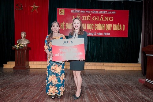 Đại diện công ty cổ phần MISA đã tặng học bổng cho các sinh viên có thành tích xuất sắc trong học tập và quỹ khuyến học của Khoa Kế toán Kiểm toán.